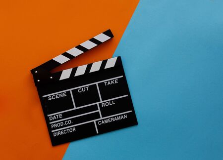 Movie clapper on the blue background.