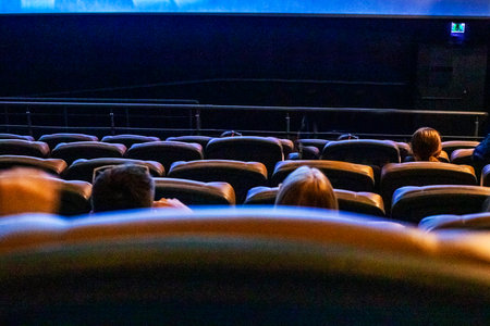 A group of people are watching a movie in a theater