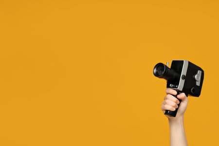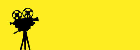Super 8 movie camera isolated on yellow background. Cinema background. Copy space