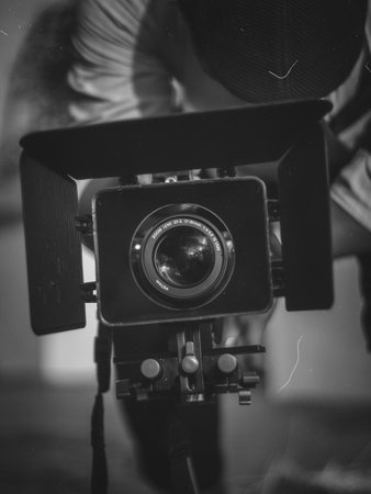 Behind the scenes of video production or video shooting, Film grain, selective focus, special illumination