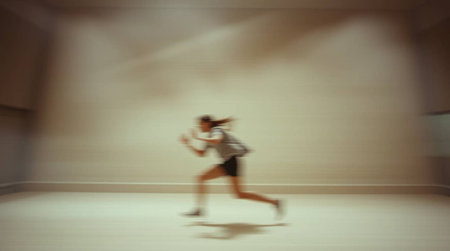 Runner hallway motion blur monochrome back view urgency empty corridor indoor