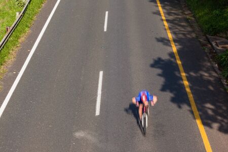 Cycling race cyclist speed blur overhead photo highway bridge position.
