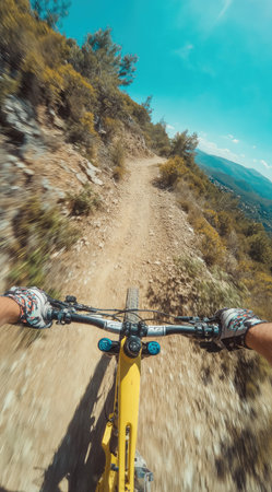 Mountain biking adventure scenic forest action photography vibrant wilderness first-person view thrilling experience