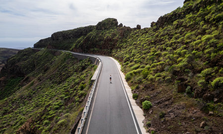 Aerial view of highway in the mountains. Tenerife, Canary Islands, Spain