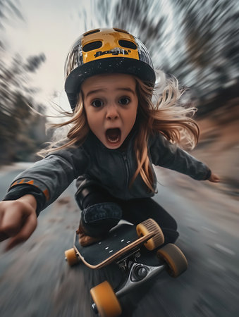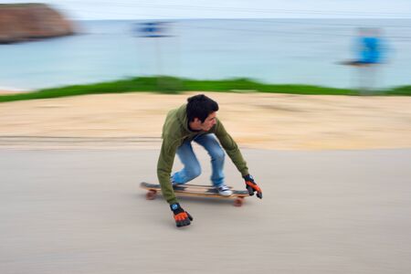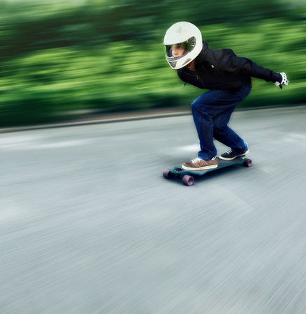 skateboarder riding on the road with motion blur effect.
