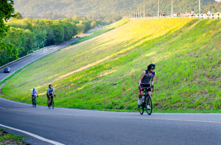 CHONBURI THAILAND APRIL 26 : Unidentified cyclist cycling uphill on 26 April 2014 in Chonburi Thailand