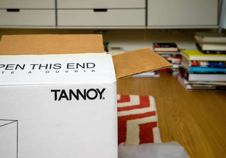 Unboxing package of Tannoy HI-Fi loudspeaker a British manufacturer of loudspeakers