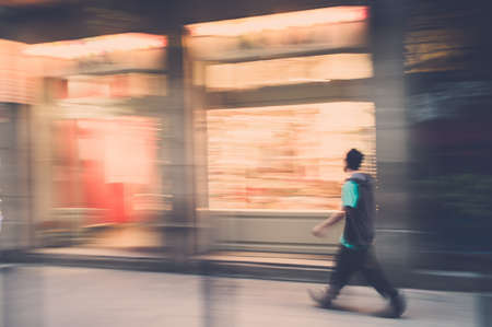 Stylish man running against colorful motion blur background fast delivery excited energy