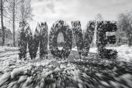 A blurred word MOVE is prominently displayed in a snowy urban landscape, conveying a sense of action and motivation despite the winter scenery. The atmosphere feels cold yet inviting.