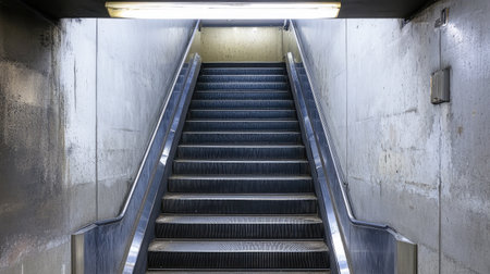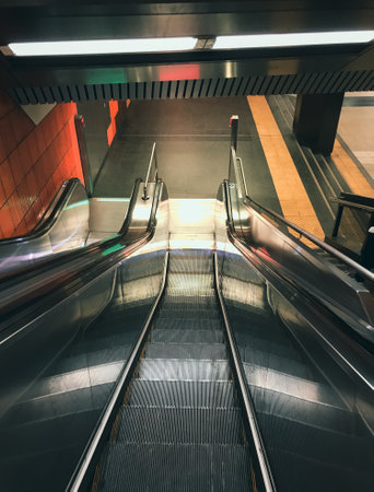 A beautiful shot of the escalator and normal stairs in underground metro station