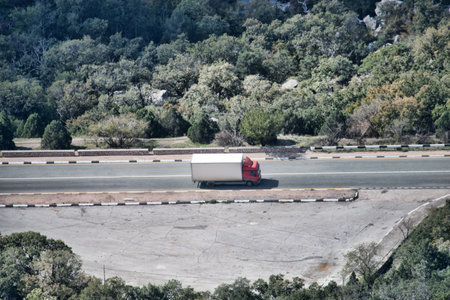 Unrecognizable truck transport on road. Transport overpasses on the highway for the transport of orders and goods