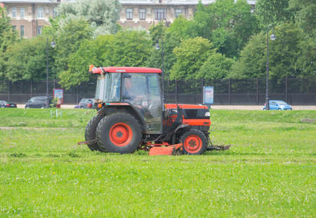 Russia Saint Petersburg July 2016 tractor mows the grass