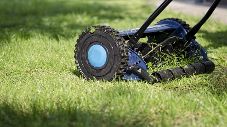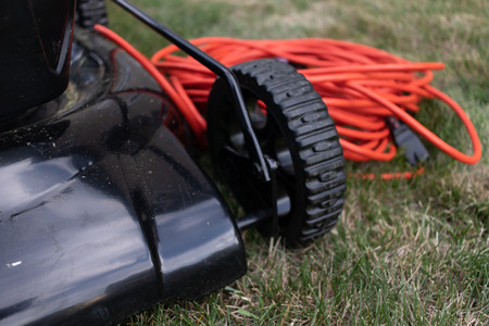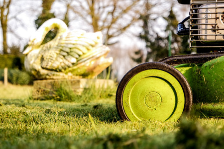Garden and grass maintainance details - close up view of grass mower, lawnmower details
