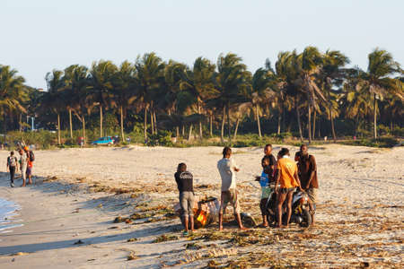 TOAMASINA, MADAGASCAR OCTOBER 17.2016: Malagasy peoples resting on the beach in harbor in the second largest city of Madagascar. In October 17. 2016, Toamasina, Madagascar