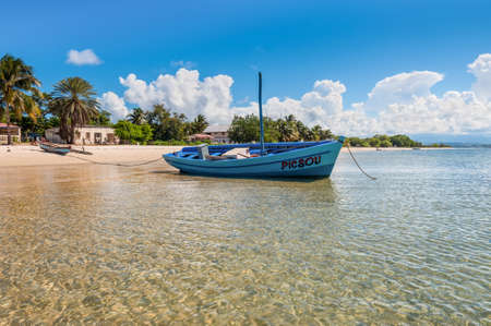 Ramena, Madagascar - December 20, 2015: Malagasy sail boat on the sea coast in a fishing village of Ramena, Madagascar.