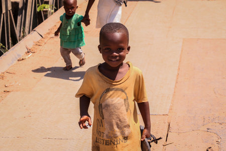 Zanzibar, Tanzania - january 14, 2020: Unknown african young children on a street of Zanzibar island, Tanzania, East Africa
