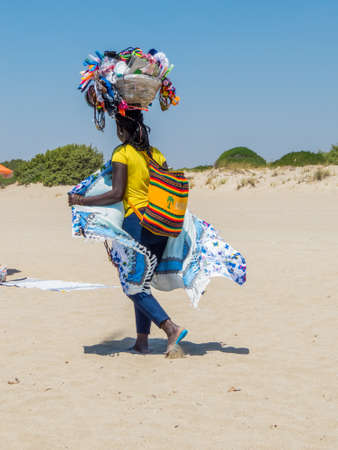 Illegal female African vendor on the beach in Italy