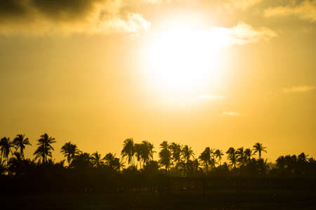 Palm trees on the beach at sunset. Beautiful tropical landscape.