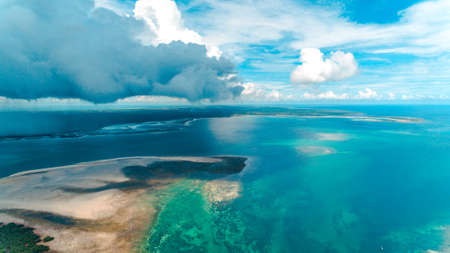 Aerial view of Atlantic coast near Palmarin. Saloum Delta National Park, Joal Fadiout, Senegal. Africa. Photo made by drone from above.
