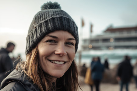 Portrait of a beautiful young woman in a hat on the background of the sea