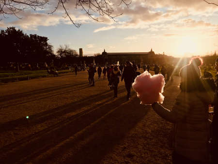 Unidentified people eating cotton candy at the annual cotton candy festival.