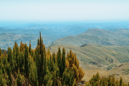 Landscape of pine tree from the top of mountain in morning in Phurua National Park, Loei Province Thailand