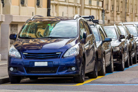 Close up of a car parked illegally against traffic rules on pedestrian city street side