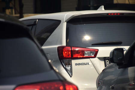 Jakarta, Indonesia - July 23, 2019: The view from a traffic jam car around the Grand Indonesia mall (Bundaran HI) Jakarta, Indonesia