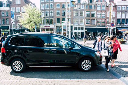 Amsterdam Netherlands April 22, 2019 View of a classic Dutch taxi in the streets of Amsterdam in the afternoon