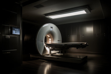 Room with an MRI scanner with art lighting AI