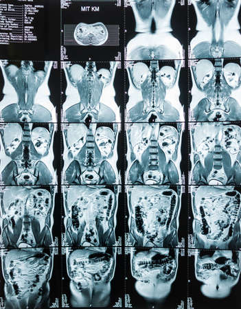 Magnetic resonance imaging, MRI, computed tomography, x-ray image. Area of ​​the pelvis with kidneys infected with tumors