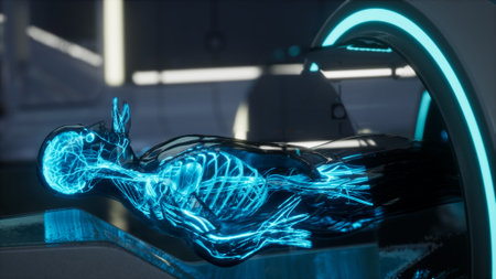 perspective vision and artificial intelligence in healthcare, showing the analysis of X-rays or diagnosis of diseases with unprecedented accuracy