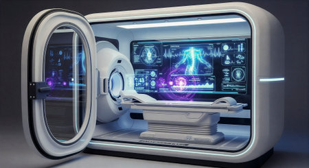 modern high-tech MRI machine in a medical office, close-up front view