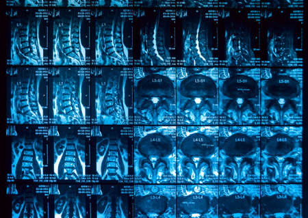 Magnetic resonance imaging, MRI, computed tomography, x-ray image. Cross section of the spine