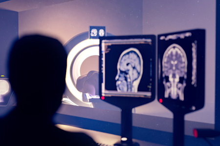 Displaying magnetic resonance imaging results on a monitor, highlighting potential brain issues during medical research, emphasizing advancements in healthcare and diagnostics