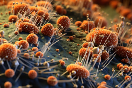 close-up of microscopic bacteria colonies interacting, created with generative ai