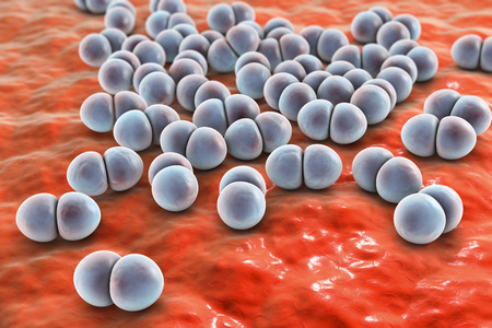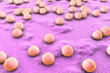 Bacteria Enterococcus on surface of skin or mucous membrane, 3D illustration. Gram-positive cocci which cause infant endocarditis and other infections