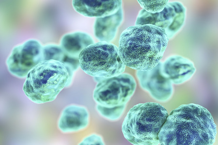 Microscope close up of meningitis bacteria, also known as meningococcus 3D Illustration
