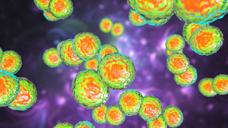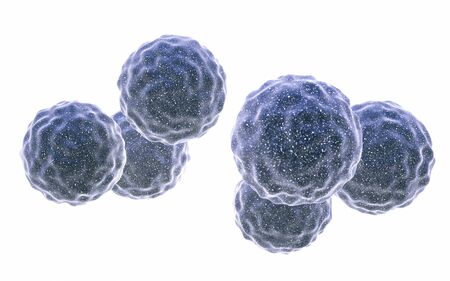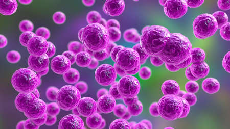 Microscopic illustration of Staphylococcus, pyogenic bacteria, purulent bacteria, realistic illustration of microbes, spherical bacteria, cocci, medical illustration, scientific background