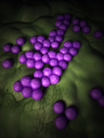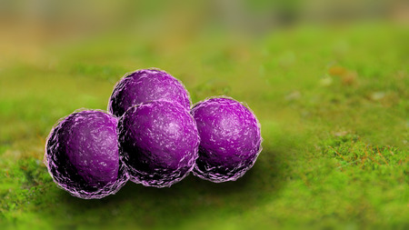 Bacteria Staphylococcus aureus on the surface of skin or mucous membrane, 3D illustration