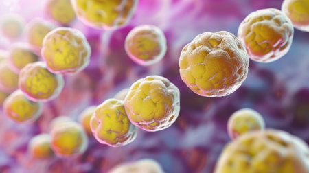 Parasite eggs, worm eggs, ai illustration in 3D style. Close-up view of worm eggs with highly detailed texture. Scientific background