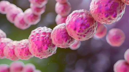 Three-dimensional drawing streptococci in blood, Streptococcus pyogenes, model of bacteria, realistic illustration of microbes, microorganisms, spherical bacteria