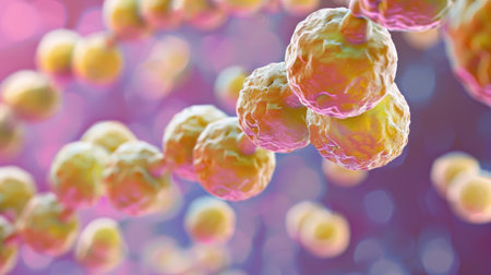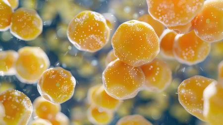 Colorful microorganism cells close up. illustration in high details for medical education and science. ai generative.