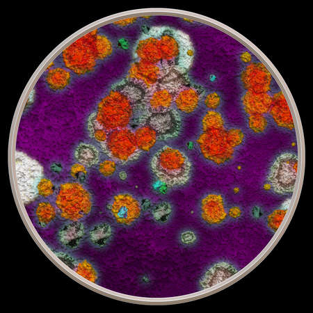 Backgrounds of Characteristics and Different shaped Colony of Bacteria and Mold growing on agar plates from Soil samples for education in Microbiology laboratory.