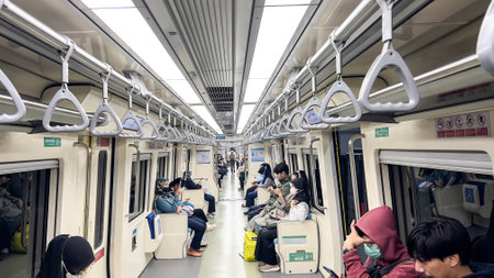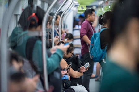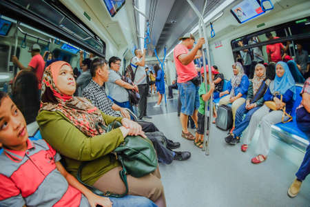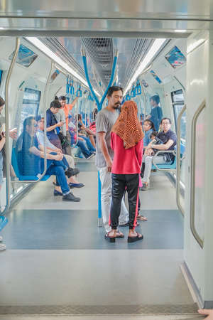 KUALA LUMPUR, MALAYSIA - December 31th, 2017: Passengers inside Mass Rapid Transit MRT train . MRT is Mass Rapid Transit Corporation Sdn Bhd, in Kuala Lumpur, M`alaysia.