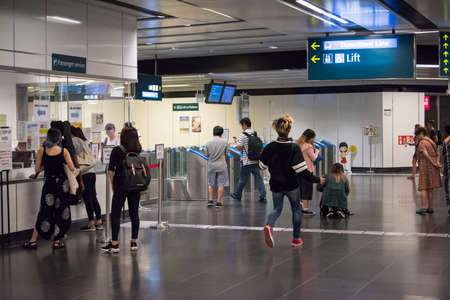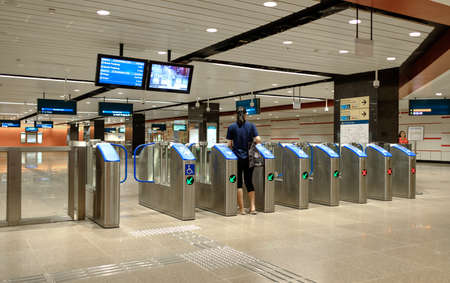 Singapore-08 NOV 2019: MRT ticket gate punch card area in Singapore