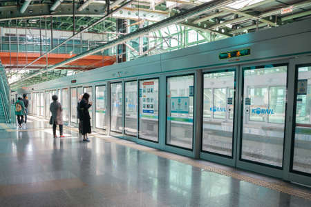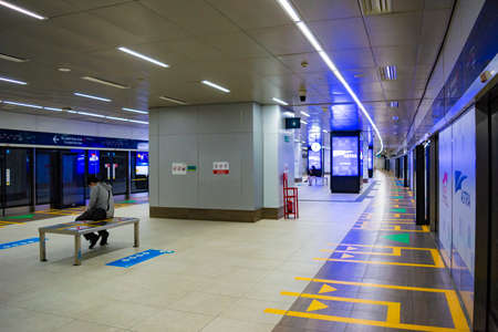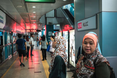 KUALA LUMPUR, MALAYSIA - December 31st , 2017: Passengers are waiting for MRT Mass Rapid Transit arrival. MRT is Mass Rapid Transit Corporation Sdn Bhd, in Kuala Lumpur, Malaysia.
