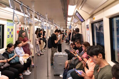 BANGKOK, THAILAND- JUNE 8 : Unidentified Passengers on a Metropolitan Rapid Transit (MRT) Subway Train in Bangkok Thailand on June 8, 2018