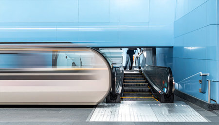 Escalators inside the Roosevelt Island Subway Station, in Manhattan, New York.