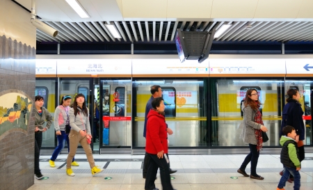 BEIJING, CHINA - APR 5: Beijing subway interior on April 5, 2013 in Beijing, China. Beijing subway system is the oldest in mainland China operated since 1969.